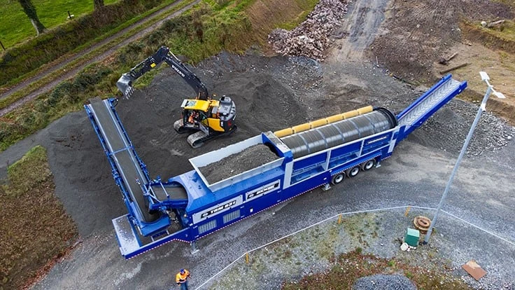 Screening efficiency is ensured through a 31-foot-long drum with hydraulically adjustable drum cleaning brushes. High production rates are maintained by an Edge intelligent load management system, which the company says can prevent drum overload and ensure the trommel screen is always operating at optimum performance with minimal supervision.