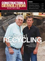The January/February 2004 edition featured a cover story on Dykes Paving, Norcross, Ga. The long-time concrete and asphalt pavement recycling company was at that time creating a paving material blend that "uses roughly 70 percent recycled asphalt pavement (RAP) combined with about 28 percent processed shingle scrap, along with about 2 percent diesel fuel.