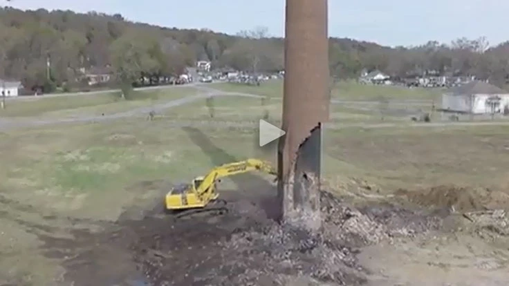 Alabama demolition contractor arrested for botched smokestack implosion Video of accident prompted investigation by state officials. A demolition contractor hired to remove a smokestack in Avondale Mills in Pell City, Alabama, is behind bars. A video captured the incident of the smokestack coming down Nov. 25, 2015 with a track hoe to scrape away its exterior after two charges of dynamite proved unsuccessful.