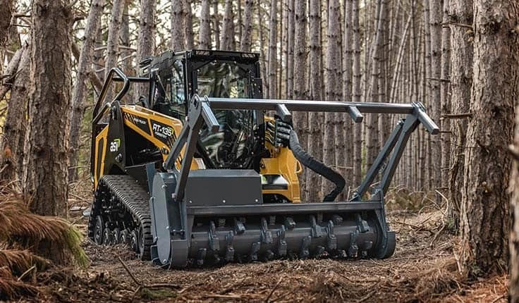 Outfitted with forestry-rated guarding and safety features, the loader is designed for brush cutting, mulching, land clearing and other high-flow applications, ASV says.