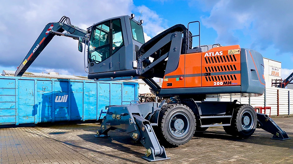 Atlas material handlers range in size from the 44,000-pound Atlas 200 MH to the 125,000-pound 520 MH, according to SMH Group, which says the German-engineered machines are known worldwide for their "fast cycle times, optimized handling and extended life span.”