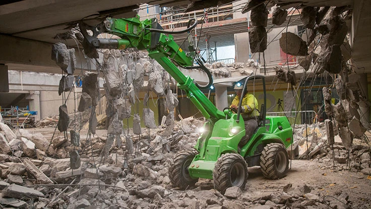The compact and lightweight styling of the Avant also allows it to work inside buildings. Avant loaders can be lifted onto the roof, take the freight elevator to the basement and are designed to perform construction and demolition tasks in tight spaces that usually requires manual labor.