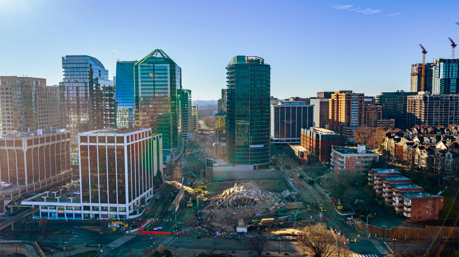 The Rosslyn Apartment Tower, a new residential building, is located directly to the south of the hotel and required a very tightly controlled implosion.