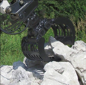 The multi-purpose grabs are available with either the HPX drive or a hydraulic cylinder for opening and closing. The multi-purpose grabs have a shell design that ensures they are ideal for loading, sorting and digging jobs. The compact rotation head absorbs extremely high forces when picking up and placing rocks.