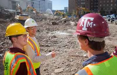 A contingent of construction science majors from Texas A&M University travelled from the classroom to the work site and got a close-up look at the operations of the demolition and recycling company Cherry Companies of Houston.