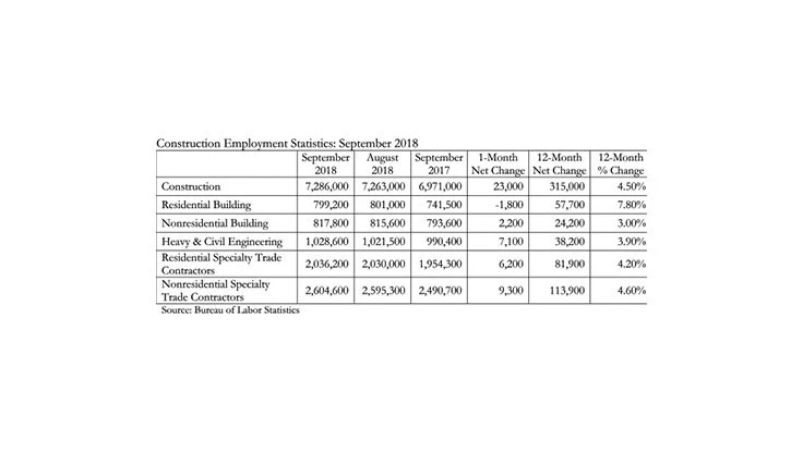 The U.S. construction industry added 23,000 new positions in September, according to an Associated Builders and Contractors, Washington, analysis of data released by the U.S. Bureau of Labor Statistics.