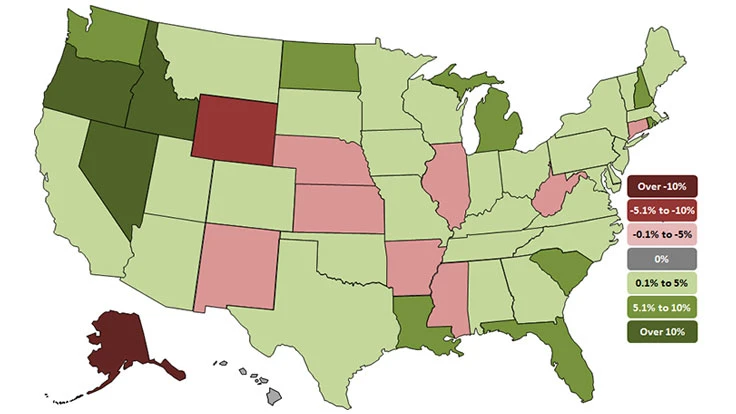 California added the most construction jobs (38,900 jobs, 5 percent) during the past year. Other states adding a high number of new construction jobs for the past 12 months include Florida (31,000 jobs, 6.6 percent); Louisiana (12,600 jobs, 9.1 percent); Washington (10,700 jobs, 5.8 percent); Texas (10,600 jobs, 1.5 percent); and Oregon (9,800 jobs, 10.9 percent). Rhode Island added the highest percentage of new construction jobs during the past year (12.8 percent, 2,300 jobs), followed by Oregon; Nevada (10.9 percent, 8,100 jobs); New Hampshire (9.5 percent, 2,400 jobs); and Louisiana.