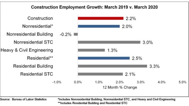 The construction unemployment rate was 6.9 percent in March, up 1.7 percentage points from the same time one year ago. Unemployment across all industries rose from 3.5 percent in February to 4.4 percent last month, a direct result of the global pandemic.