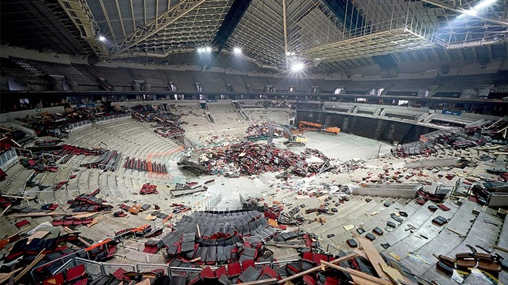 Demolition started Dec. 5. Crews spent weeks removing the seats, equipment and ceiling tiles — “all the stuff you want to get out of the way so that when it’s time to start doing the real serious demo, you’re set to go,” Johnson says.