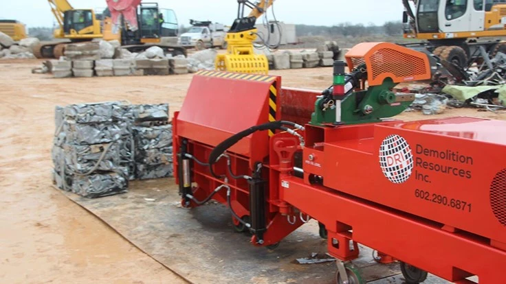 DRI says the baler is designed to create a to 12-1 ratio reduction in elevator trips with the waste material and give customers a premium price for metal with bales that are prepared.