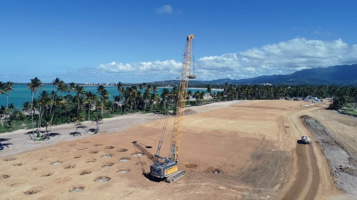Densification chose the crane to help prepare residential building lots as part of a multimillion dollar project within a five diamond resort. Densification is using a 20-ton weight dropped from 80 feet on the Puerto Rico project to prepare the site for further construction The lots should be ready for home building in early 2020.