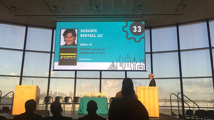 In 2015, companies recognized among the Inner City 100 program were ranked by revenue growth over the five-year period between 2010 and 2014. Durante Rentals ranked 33rd overall on the list of 100 with a five-year growth rate of 319 percent, according to the company.