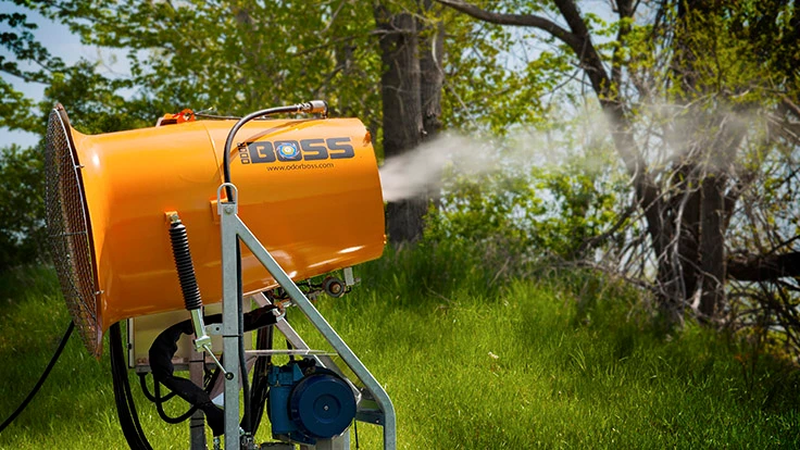 The OdorBoss 60G (OB-60G) by Dust Control Technology (DCT), Peoria, Illinois, uses a specially engineered mist that distributes odor treatment agents over great distances using water vapor as the delivery vehicle, according to the company. A fan generates wind movement, propelling the treatment into the air where it is designed to attach to odor vapor. The result is a reduction in short- and long-range odor emissions, the company says, helping companies remain compliant with environmental regulations and maintain good relations with neighbors.