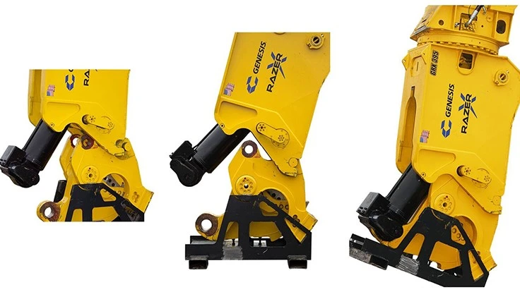 Genesis Attachments, Superior, Wisconsin, announced the launch of its new Razer X Multi-Jaw Demolition Tool (GRX) which the company says enables excavator operators to change jaw sets in less than 2 minutes without leaving the cab.