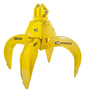 According to Genesis, the grapple is available in capacities ranging from .75 cubic yards to 1.5 cubic yards. Dan Raihala, Genesis’ design engineer, says customers can expect more productivity from the new grapple design.