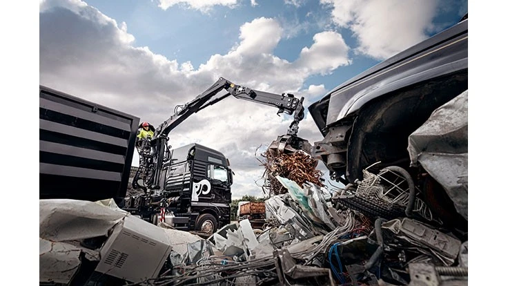 The recycling crane range consists of six crane models with capacity ranges of 10 to 16 ton-meters of torque. The cranes can be combined with the Multilift hook lift to form a remote-controlled unit for easy and efficient material handling operation, the company says.