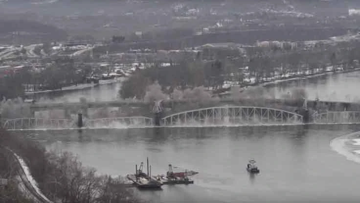 The Hulton Bridge in the Pittsburgh suburb of Oakmont came tumbling down into the Allegheny River in seconds on Jan. 26, 2016, by a controlled implosion.
