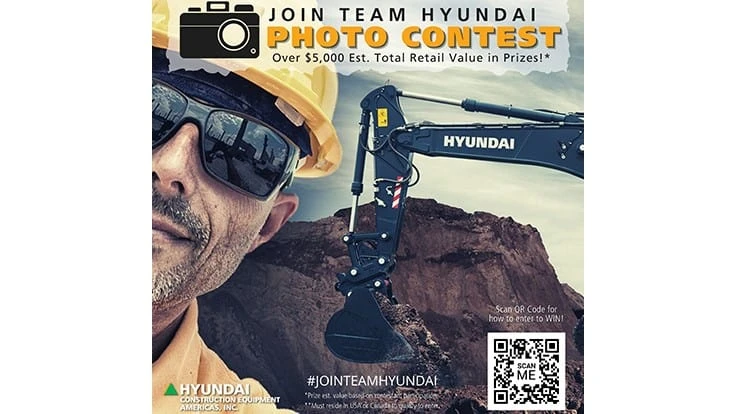 Norcross, Georgia-based Hyundai Construction Equipment Americas is holding a photo contest in the United States and Canada offering prizes with an estimated $5,000 in retail value.