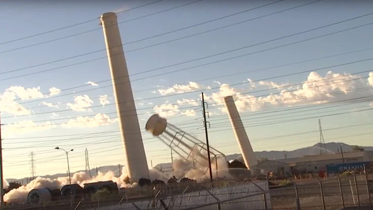 Crews imploded a water tower and two stacks at an APS power plant in Phoenix at 7 a.m., Saturday, Oct. 1, 2016.