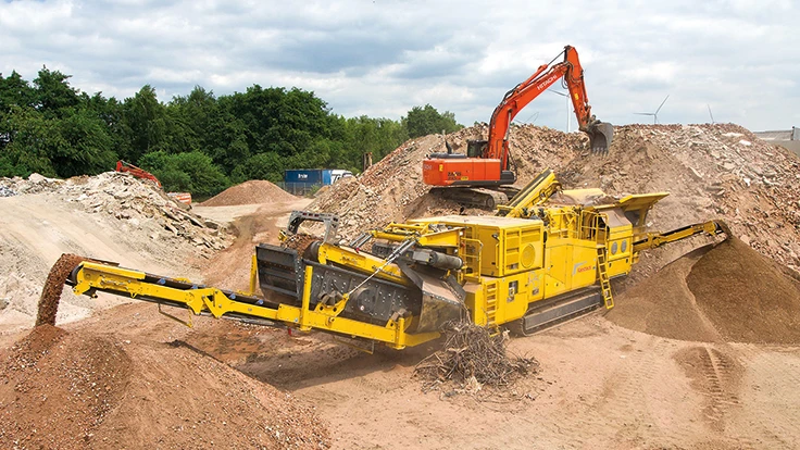 Keestrack’s track-mounted impact crusher units comprises three models. The R3 is a 30 ton construction site crusher, the R6 flagship model has a total weight of 60 tons and the Destroyer unit, a R6e model in a diesel-electric hybrid version with electric motors driving the conveyor belts and screen components.
