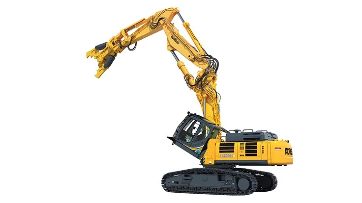 With a reach of up to 81 and 90 feet, respectively, the SK400D and SK550D demolition machines are built to work on tall buildings. Both models are available with Kobelco’s three-piece separate boom demolition front and high reach front. The separate boom boasts a wide working range and simplifies the demolition of lower and underground levels, while the ultra-long attachment enables the SK400D and SK550D to demolish levels up to nine stories high. Large crusher tools, up to 3 tons on the ultra-long attachment and 5.3 tons on the separate boom, can be added for increased power and efficiency during demolition.