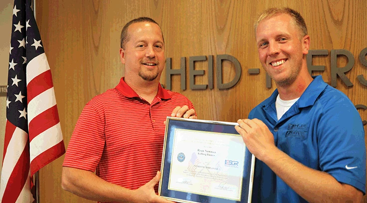 Ryan Newman, director of parts for KPI-JCI and Astec Mobile Screens, was recognized for providing outstanding support to a member of the National Guard or Army Reserve by the South Dakota Employer Support of the Guard & Reserve (ESGR) organization. Newman was nominated by Kyle LaCroix, an outside parts sales representative and a sergeant in the 960th Quartermaster Company of the Army Reserves.