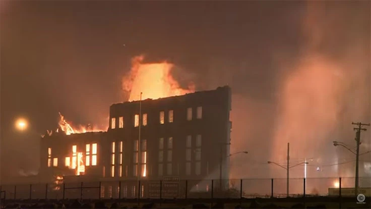 The explosives demolition team from Tulsa, Oklahoma, imploded the buildings after rebar and concrete had been removed to direct the building’s angle of collapse, the report says. Dust suppression systems that included fans and spraying water helped contain the concrete and dirt dust.