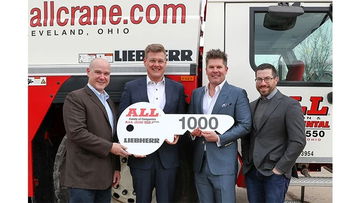 Newport News, Virginia-based Liebherr celebrated the milestone of delivering the 1,000th LTM 1200-5.1 mobile crane to Cleveland-based All Family of Companies. The All Family of Companies is the largest privately owned crane rental and sales organization in North America, with 36 branches operating under multiple names—All, Central, Dawes, Jeffers and ALT.