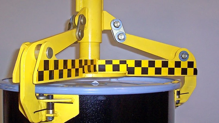 According to Liftomatic, the 3A-HD-BHDL is a fully automatic and mechanical below-hook attachment that can be used to lift 55-gallon drums from an overhead position for placement to or from many containment devices, scales, pallets or similar handling requirements. Drums remain in a vertical position while lifted and transported with the unit.