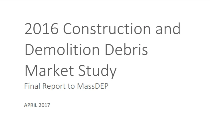 The final report, Massachusetts Construction & Demolition Debris Market Study, has been published and can be accessed here. The project commenced in July 2016 with the field work undertaken between September and December 2016.