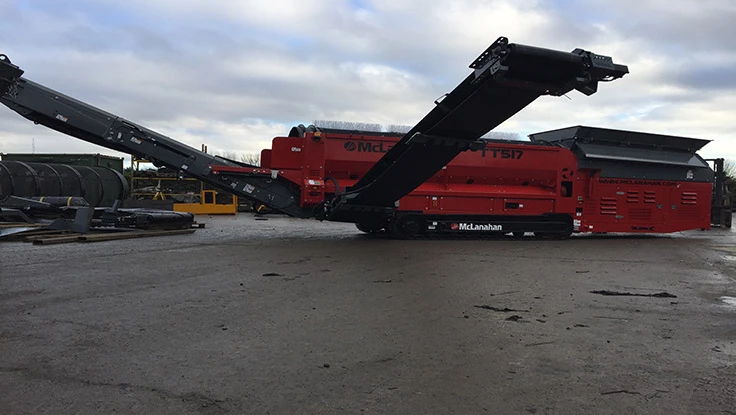 McLanahan Mobile Solutions track trommels feature a self-cleaning drum that features four lifter bars and three warp-around screen mesh sections. The trommel drum measures 16 feet, 9 inches long and 4 feet, 7 inches in diameter. All three mesh sections are bolted to the outside to make media changes as simple and fast as possible, and when maintenance is required the drum is easily lifted out, says McLanahan. The screen angle of the drum is hydraulically adjustable from 0 to 4 degrees.