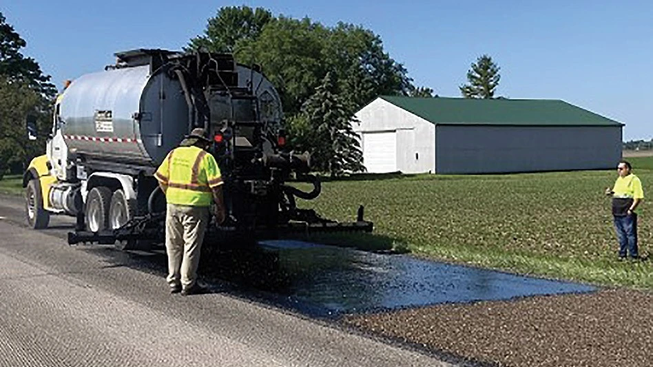 Installation of rubber modified chip seal on Seven Mile Road in Bay County.