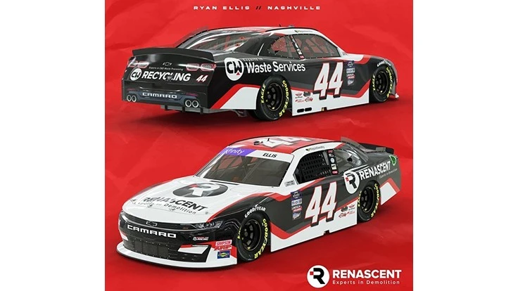 “Many of our clients and employees are big NASCAR fans, and we couldn’t be more excited to sponsor Ryan and watch him race with our big circle R on his hood,” says Joshua Campbell, division president of Renascent. “The car will also be sporting our two other brands, CW and CW Recycling. We’re grateful for this amazing opportunity.”