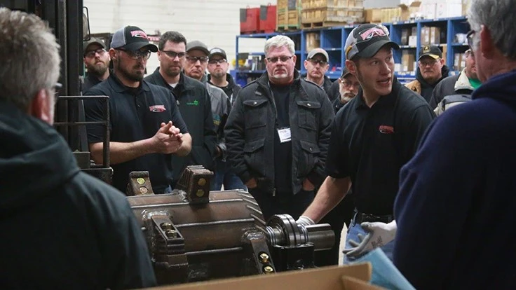 The two-day class includes a manufacturing facility tour, equipment operation best practice training, a hands-on demonstration and plenty of networking opportunities allowing machine owners to learn from each other. This year the education focused on how to properly feed a grinder, how to perform preventative maintenance and how to troubleshoot. The hands-on demonstration showed attendees how to install B-Loc keyless bushings on a Rotochopper grinder.