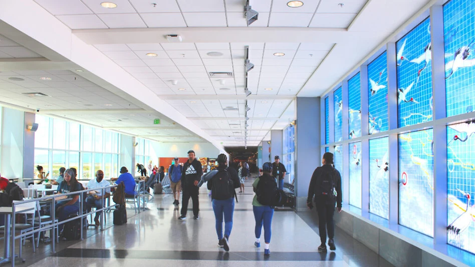 The Terminal 2 Ceiling Tile Replacement Project involved the comprehensive replacement of ceiling tiles with what airport officials say are sustainable, environmentally friendly tiles. According to the Port of Oakland, which owns the airport, the new ceiling tiles brighten the space, reduce noise levels and enhance passenger comfort, as well as feature increased durability and ease of maintenance.