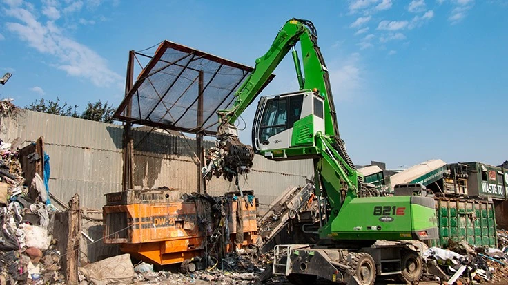 Sennebogen says the new mobile Sennebogen 821 E material handler, delivered by the Bristol, England-based sales and service partner Molson Group in June 2018, has developed into an all-purpose machine for Clearaway. It is used to feed the company's Doppstadt shredder and presort the delivered materials and loading trucks. For the driver, Sennebogen says the best thing is the elevating comfortable Maxcab, the latest generation of which is even more ergonomic. Its view height of about 5.5 meters (18 feet) gives the driver an optimal overview.