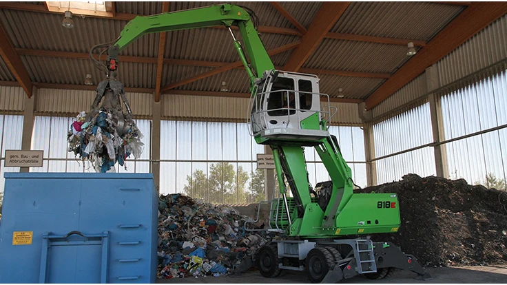 Two new Sennebogen 818 M material handlers are helping to sort 150,000 metric tons per year of discarded household and and commercial materials for a waste management authority in western Germany.