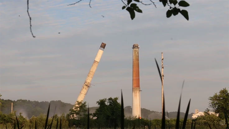 The smokestack at a former papermill site in Muskegon, Michigan, was imploded July 18, a report by WZZM13 says. The 70-year-old stack, known as Power House Stack No. 1, was demolished after officials raised concerns that it may collapse.