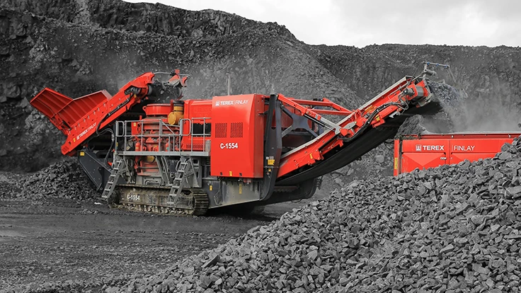 Terex Finlay says the aggressive machine incorporates the Terex MVP450x cone crusher that can accept an all in-feed and features direct variable speed clutch drive and hydraulic closed side setting (CSS) adjustment. The Terex MVP450x cone crusher pulverizes material and features a patented Rollercone® roller bearing design and the hydropneumatic tramp iron relief system, Terex Finlay says. These features combine to give operators an efficient and aggressive crushing action, high performance and low cost per ton, according to the company.