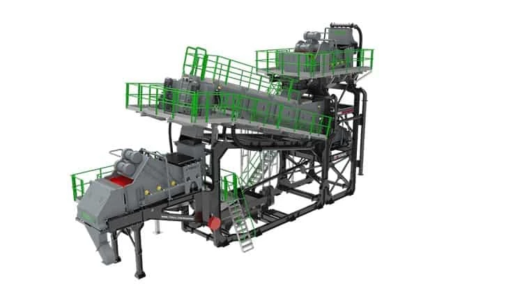 The system consists of hydro floatation water injection, integrated pre- and postscreens, a high-volume trash removal screen and single-pass processing for various feed materials.