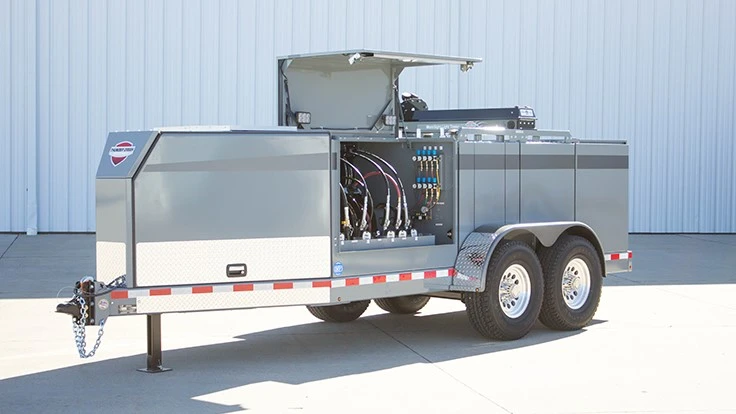 The SLT retains features of the previous model, such as 10-gauge steel tanks, interior LED lighting and the pneumatic pumping system with reels up to 75-feet long. The trailer can be purchased without the rear utility box and combination generator/air compressor.
