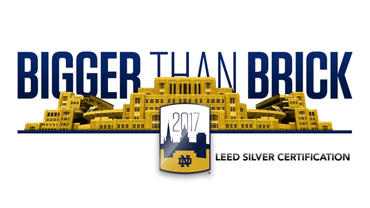 The university architects, engineers and planners also incorporated sustainable practices in Notre Dame Stadium, although it will not be part of the LEED certification process. New LED lighting installed last year in the stadium will reduce power consumption by 60 percent and are designed to up to 20 years. In addition, all the replaced seating from the lower bowl has been repurposed.