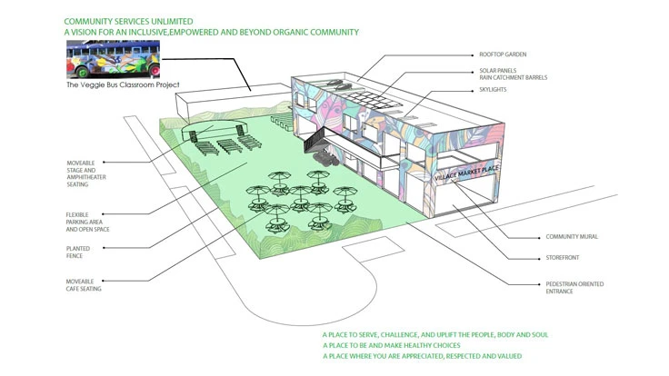 The veggie bus will become a permanent part of the urban farm and wellness center that is being developed at CSU’s headquarter, the Paul Robeson Community Wellness Center in South L.A., and will include and feature sustainable design elements such as: