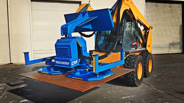 The new CM 3 compact modular vacuum lifting system from Vacuworx, Tulsa, Oklahoma, is made for contractors who run compact equipment such as skid steers, track loaders, articulating wheel loaders and mini excavators on the job every day.