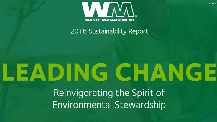 Waste Management, Houston, released its 2016 sustainability report titled Leading Change. The report highlights progress toward making recycling sustainable, reducing the company’s greenhouse gas footprint, keeping employees and communities safe and giving back to the communities it serves.