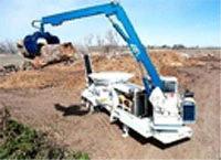 Tub grinder processes construction waste at a rate of up to 85 tons per hour. It weighs in at 78,000 pounds, has a 13-foot tub diameter and a screen area of 3,415 square inches. It features a boom length of 29 feet and a fuel capacity of 95 gallons and has a 52-inch hammermill. The cab is capable of rotating 360.