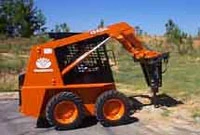 Skid steer loader from Daewoo features a standard tipping load of more than 3,000 pounds. It has a standard operating load of 1,450 pounds, a dump height of 86.3 inches, a maximum dump angle at full height of 45 degrees and an arm lifting force of 2,890 pounds.