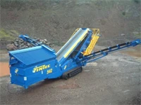The Fintec 542 Tracked Screen is designed specifically for the recycling and contractor market. It has a 12-foot by 5-foot two bearing screenbox with increased screening angle built into the bottom deck of the screen. This feature coupled with the larger screening surface area and increased throw on the screenbox enhances screening efficiency and capacity, through the actual screenbox itself. The Fintec 542 Tracked Screen has a unique user-friendly folding access walkway fitted as standard around the screenbox, thus providing the operator with easy access for maintenance. Also, the belt feeder has an 8-cubic-meter capacity and is fitted with a radio controlled tipping reject grid as standard. It is driven by a Cat 3054C water-cooled diesel 99-hp engine with an Engine Shut Down Protection System.