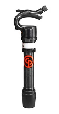 The Chicago Pneumatic Rivet Busters are available in choice of cylinders. The CP 4608 features an 8-inch cylinder with 1080 bpm and the CP 4611 has an 11-inch cylinder, 720 bpm. The Boyer valve and the long piston stroke is designed to deliver the power needed on most jobs. A stepped cylinder configuration is designed to prevent accidental ejection of the hardened steel piston from the cylinder.