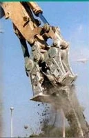 An attachment designed to crush concrete as well as remove and cut rebar. It features replaceable teeth and rebar cutters and requires no additional hydraulics. The Lemac crusher is equipped with an offset pivot designed to maximize crushing force and reduce stress on stick. It's made from quenched and tempered alloy steel with a minimum yield of 130,000 PSI.